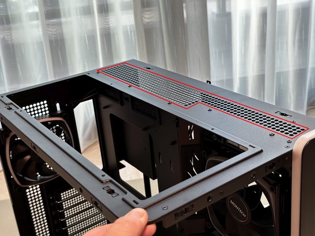 原因是KING 95 Pro 頂部些微架高且留有散熱開孔,但冷排/風扇架也跟著架高,不就享