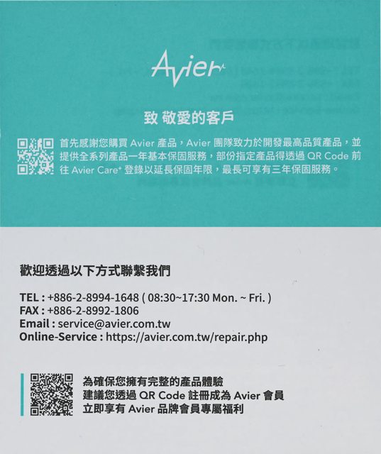 訊、Avier CARE保固說明、QR碼、條碼、新的USB認證標誌