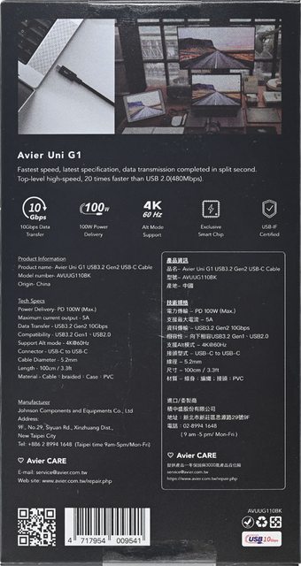 標題[開箱] Avier Uni G1 USB3.2 Gen2 100W線
