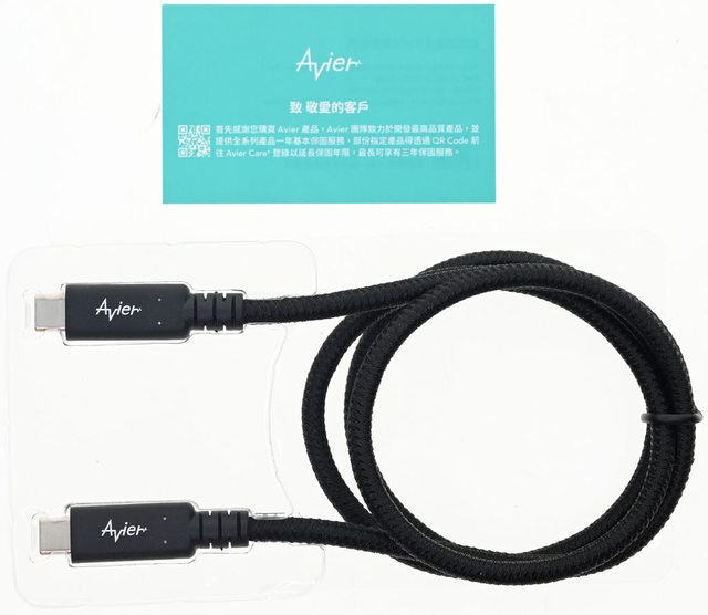擺測試,耐用度極佳,正反皆可插的人性化Type-C插頭設計,提供Avier Care一年保固及
