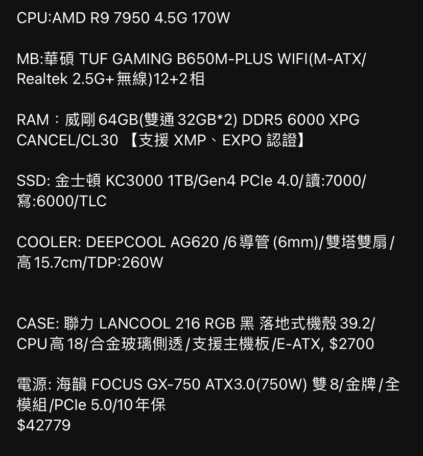 → jasn4560: 省的錢 都可以在把CPU升級上7900x 220.128.138.46 01/10 16:17