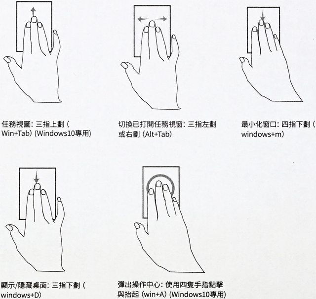 ●內建大面積高精度多點觸控板,具備豐富的17種Windows 10觸控手勢操作,並可透過組