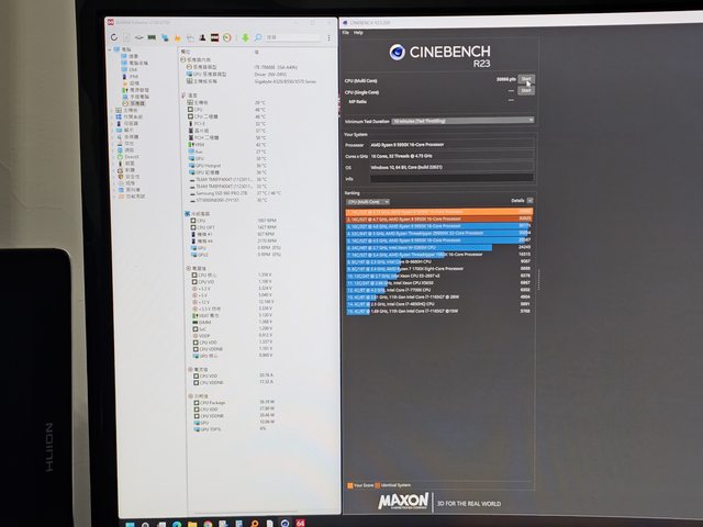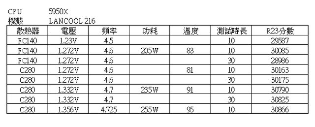 處理器為 AMD 5950X 手動定頻定壓 以溫度95度為基準