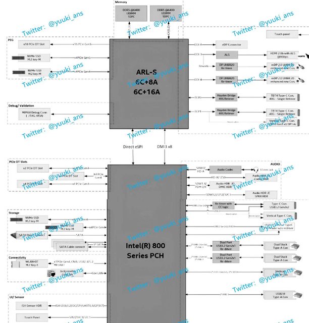新平台的細節也曝光,無意外應該就是 Intel 800 系列晶片組,採用 LGA-1851 腳位,主