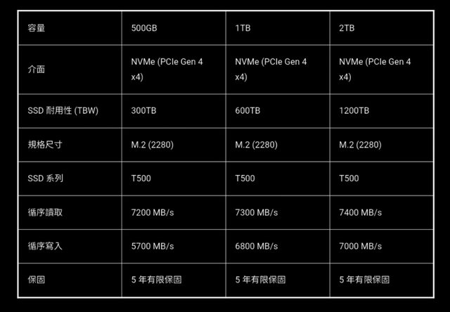 達到 1200TB,並擁有 5 年產品有限保固。那麼 T500 的性能表現與內部用料到底如何?