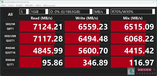 s;Q32T1 讀取 7117.28 MB/s、寫入 6494.48 MB/s;4K Q32T16 讀取 4845.99 MB/s、寫入