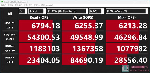 CrystalDiskMark 8.04 x64 IOPS 測試,Q8T1 讀取 6794.18、寫入 6255.37;Q32T1 讀取