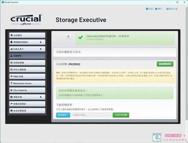 Crucial SSD 均可透過自家的 Storage Executive 工具,來監控 SSD 健康度、溫度、空