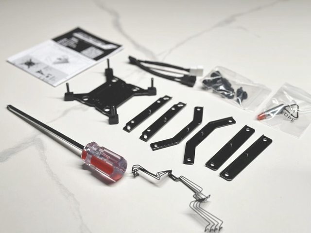 要扣具皆為黑色外觀以與散熱器搭配。之外還有散熱膏、刮刀及風扇分接線等。