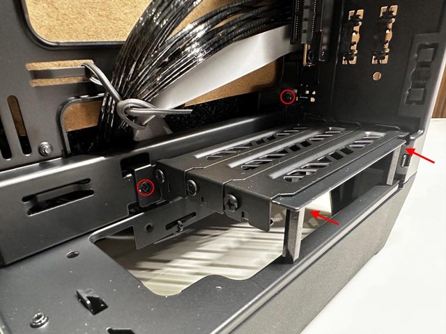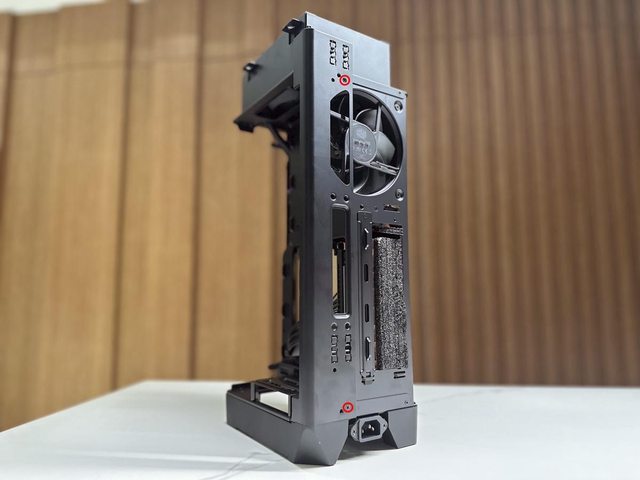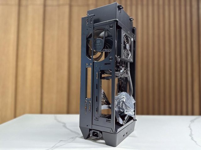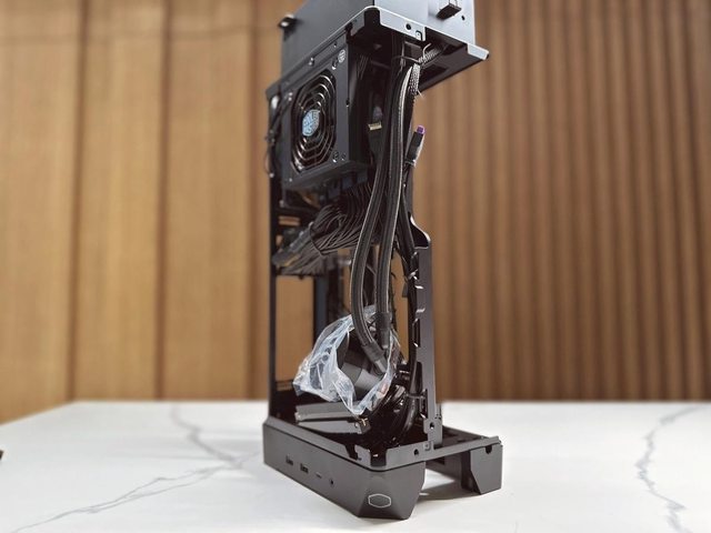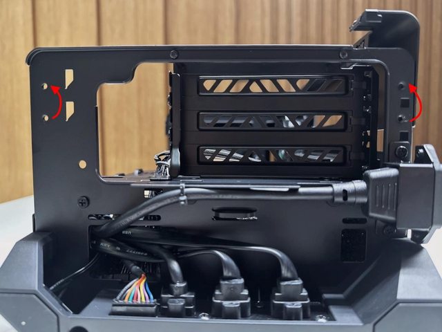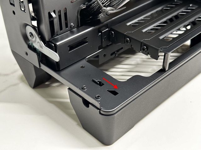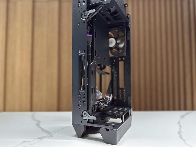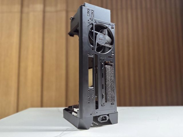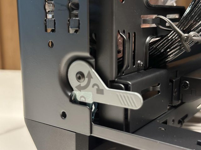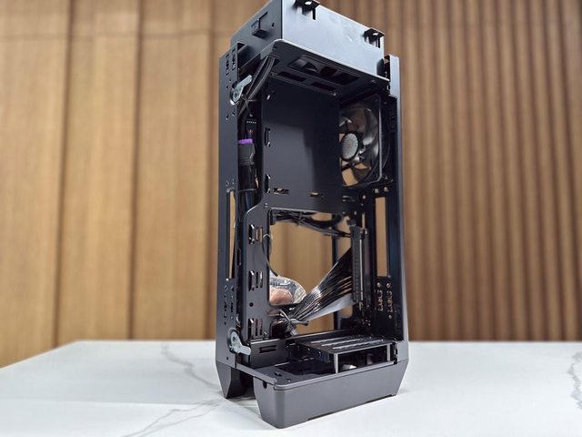拆開兩個面板後可見類似開放式機架設計的本體,再拆除同樣是免工具的藏線板即可開始