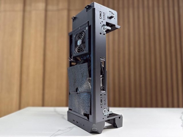 NCORE 100 MAX採用顯示卡IO口朝向下方的安裝方式。一般模式下能支援長度33.7cm、厚
