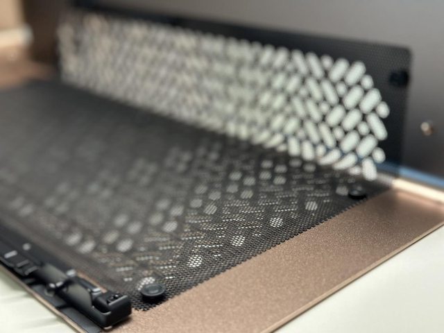 頂蓋為帶有細緻開孔的金屬材質,為整個機殼的主要排氣位置。