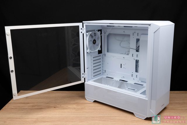扇,讓使用者不需額外購買風扇就能開箱即用,側開磁吸式玻璃側板讓零件拆卸或清潔更加
