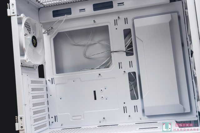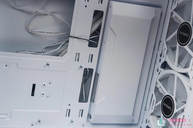 電源艙上方另有 240 mm 的風扇安裝空間,也有多個出線槽設計方便玩家走線使用。