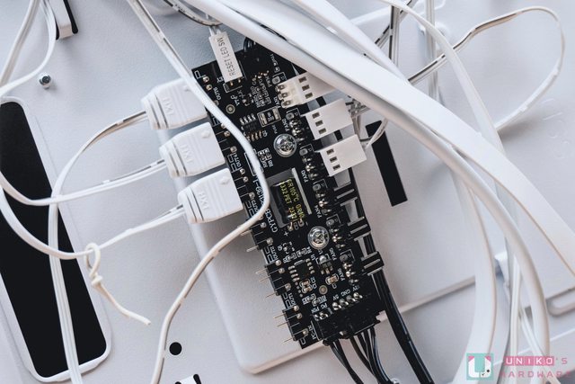 貼心的 Antec 已先將搭載的三顆風扇線材安裝上 ARGB / PWM 風扇控制器,並留各三組位