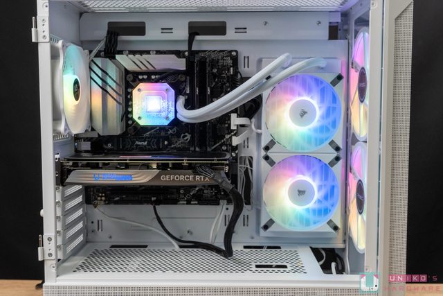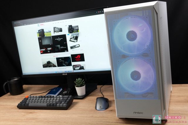 mm ARGB 進氣風扇,搭配後方一顆 120mm ARGB 風扇做好基本導流,並給予光效。