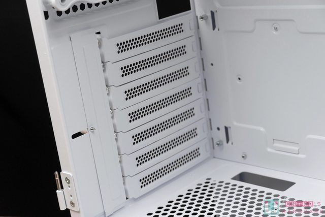 實際安裝完畢後視覺上看來還是相當簡約的,沒在側邊安裝水冷前,可以看到顯示卡的支援