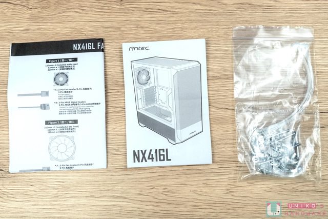 機殼隨附配件包含機殼和風扇說明書,另外還有一整包的螺絲及束帶。