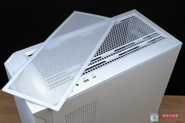 機殼頂部有附上磁吸式濾網,並提供最大 120 mm x 3 的散熱空間,可選擇安裝風扇或水