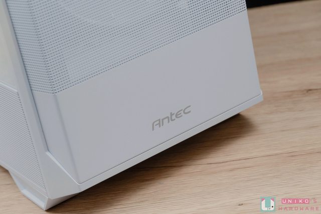 網孔並未一路開到面板最下方,保留部分面積放上 Antec 字樣強化產品形象,還能起到