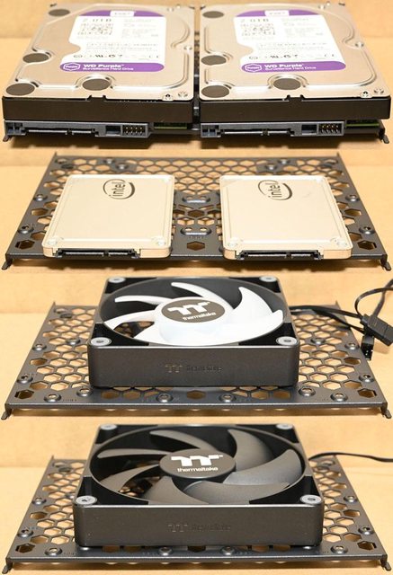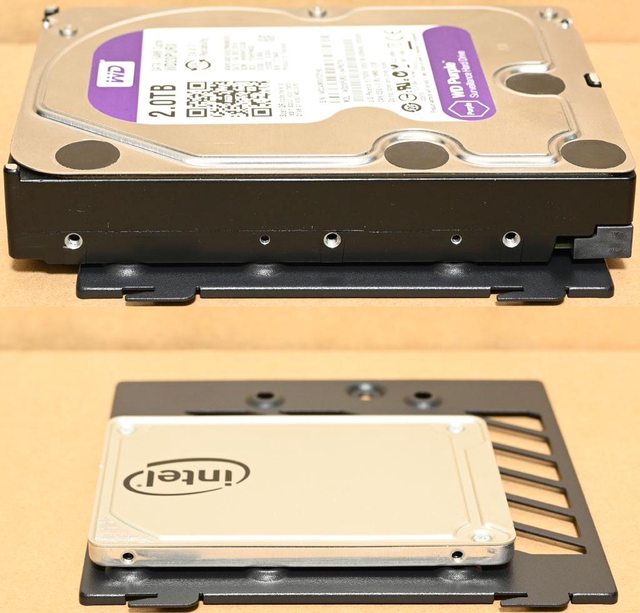 ●主機板底板後方可拆卸式固定板可安裝2個3.5吋/2.5吋裝置,右側下方可拆卸式固定板