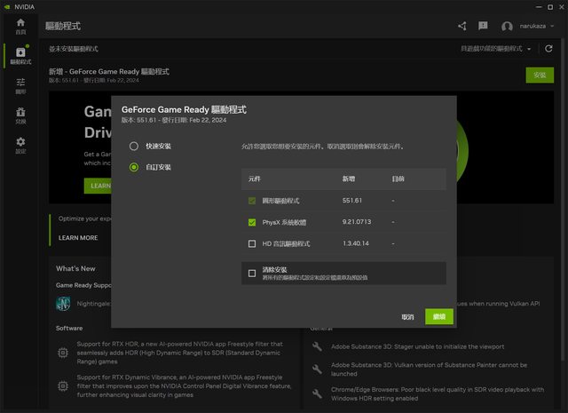 選自訂安裝部分,可以看到GeForce Experience已經沒了