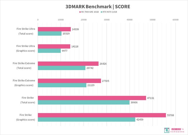 我們實際測試,觀察整體 RX 7900 GRE 性能是贏過 RTX 4070 的,在光追性能上也略贏一