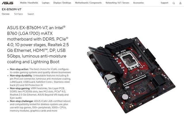 來源:華碩全球官網發布網咖板EX-B760M-V系列