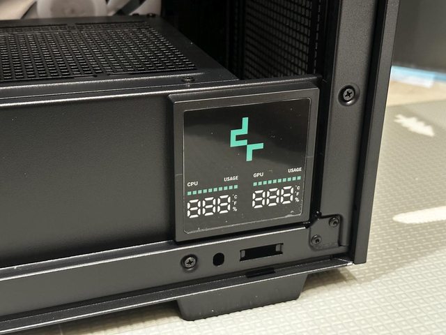 機殼內建處理器及顯示卡使用率、溫度顯示面板,九州風神LOGO在面板通電後還會發亮。