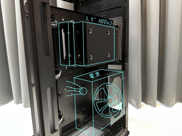 二是做為全塔機殼,3.5"硬碟的安裝位置偏少,預設只有硬碟架能裝2顆,整機也就只有