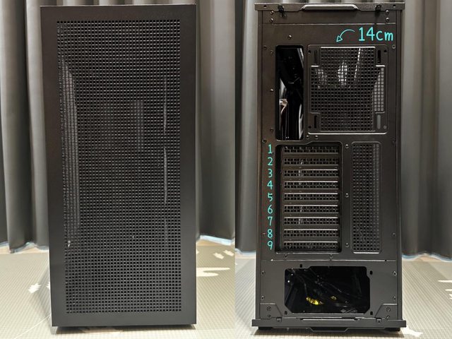 見出廠預設為電源下置模式,後方可裝14cm風扇,PCI-E則是設置了9槽,以一般ATX機殼