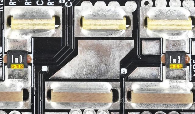 ▼主電路板背面焊點做工良好,大電流線路有敷錫