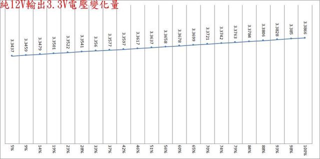 ○偏載測試,12V維持空載,測試3.3V滿載、5V滿載、3.3V/5V滿載的3.3V/5V/12V電壓變