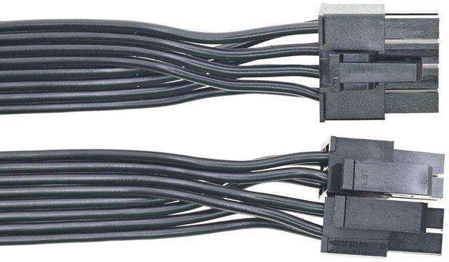 ▼2條處理器電源黑色帶狀模組化線路,提供1個EPS 8P接頭及1個EPS 4+4P接頭,18AWG線