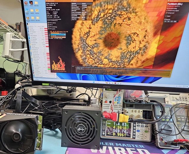 ▼用隨附的12VHPWR模組化線材連接MSI GEFORCE RTX 4090 GAMING X TRIO進行測試