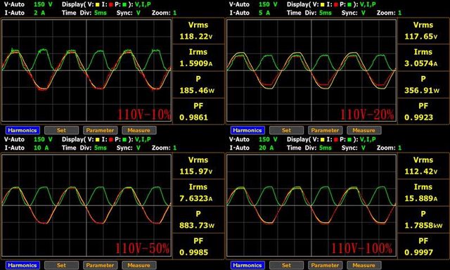 ○110V輸入的20%/50%/100%輸出轉換效率分別為92.65%/93.68%/91.98%,滿足80PLUS白金