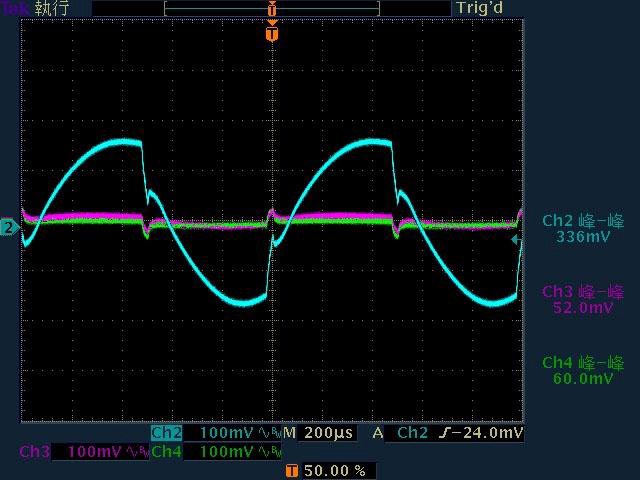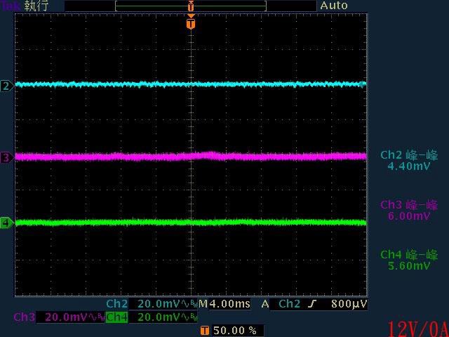 16mV/14mV/10.4mV,於純12V全負載輸出下12V/5V/3.3V各路低頻漣波分別為