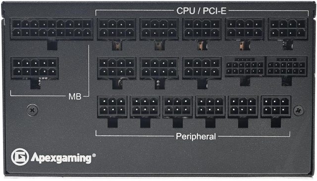 ▼模組化線組輸出插座有名稱標示,左下方有Apexgaming商標