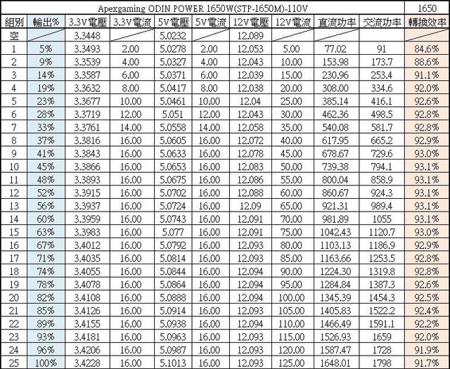 ○110V輸入時熱機下3.3V過電流截止點38A(152%),5V過電流截止點46A(184%)
