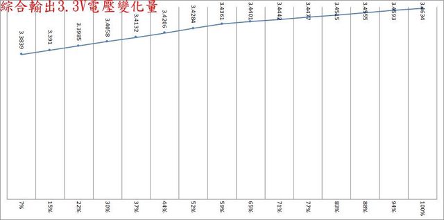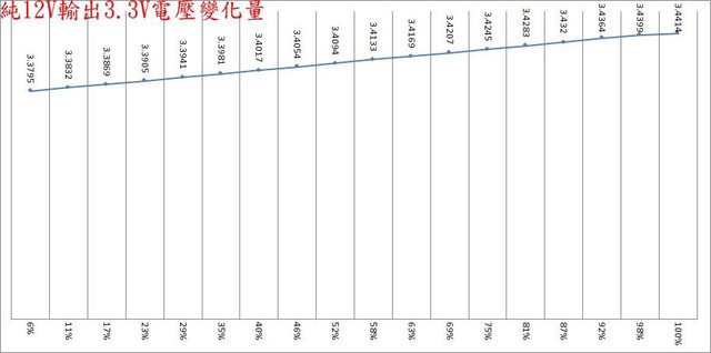○偏載測試,12V維持空載,測試3.3V滿載、5V滿載、3.3V/5V滿載的3.3V/5V/12V電壓變