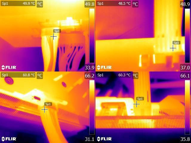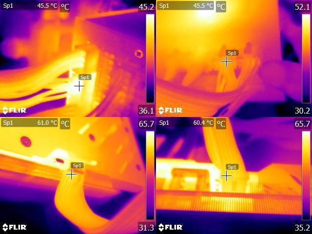 ▼執行FURMARK 30分鐘後電源端2個8P插頭(左上/右上)及顯示卡端12VHPWR插頭(左下/右