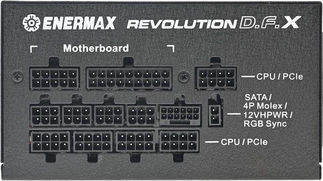 ▼模組化線組輸出插座有名稱標示,上方有ENERMAX商標及REVOLUTION D.F. X名稱