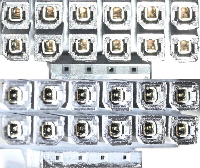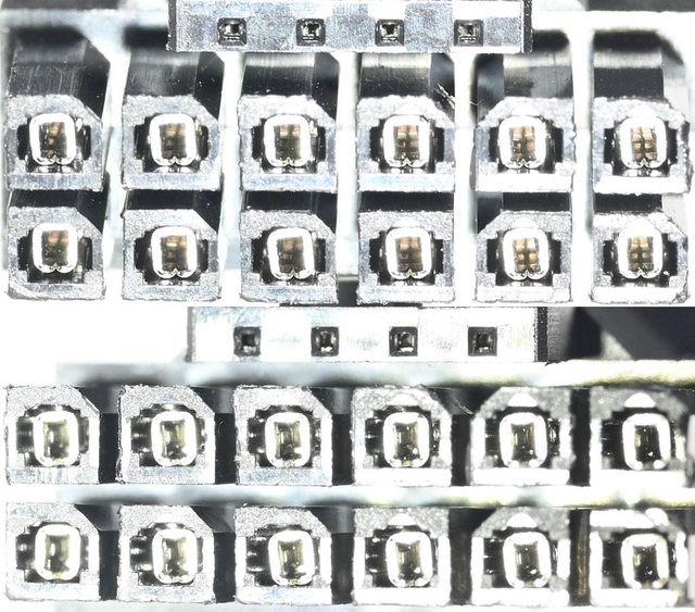 ▼電源端2個8P模組化插座轉12VHPWR接頭內部金屬連接器的樣式如下圖所示