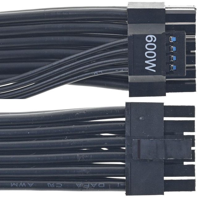 ▼1條原生12VHPWR黑色帶狀模組化線路,接頭標示600W,16/26AWG線路長度65公分