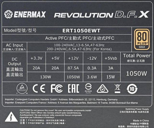 ENERMAX REVOLUTION D.F. X ATX 3.0 1050W特色: