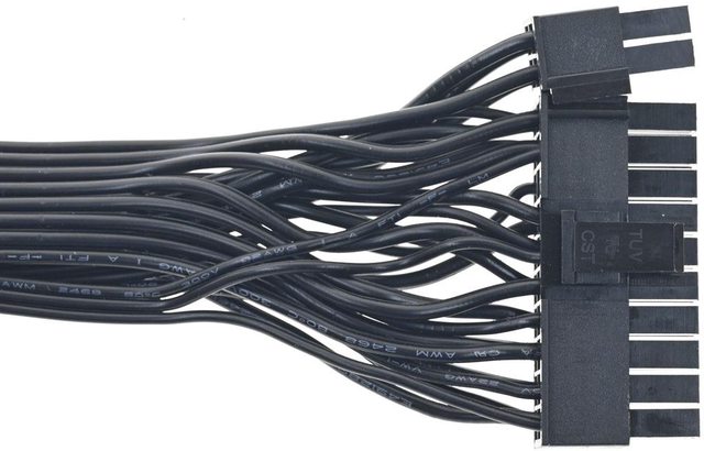 ▼1條主機板電源黑色帶狀模組化線路,提供1個ATX 20+4P接頭,18/22AWG線路長度64公
