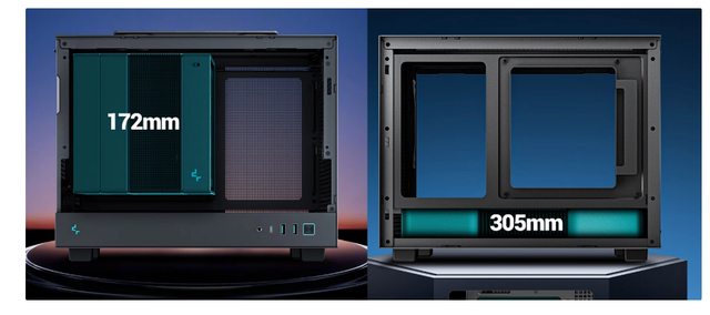 CH160 主機殼相容最高 172mm 的 CPU 散熱器,支援長度最大 305mm 的三槽顯卡