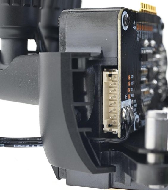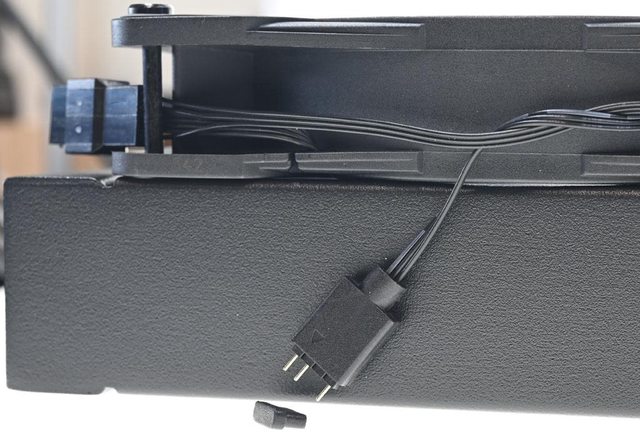 ,部分線路會纏繞固定,並穿進風扇外框與固定螺絲之間的空隙,改變風扇配置時,需注
