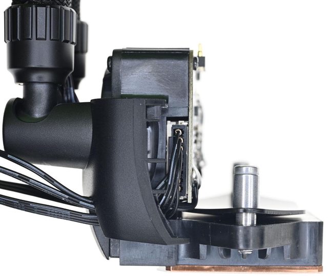 移IHS中心的特性設計偏移托架,提升熱點散熱效率。水冷頭內建散熱風扇可有效降低VRM