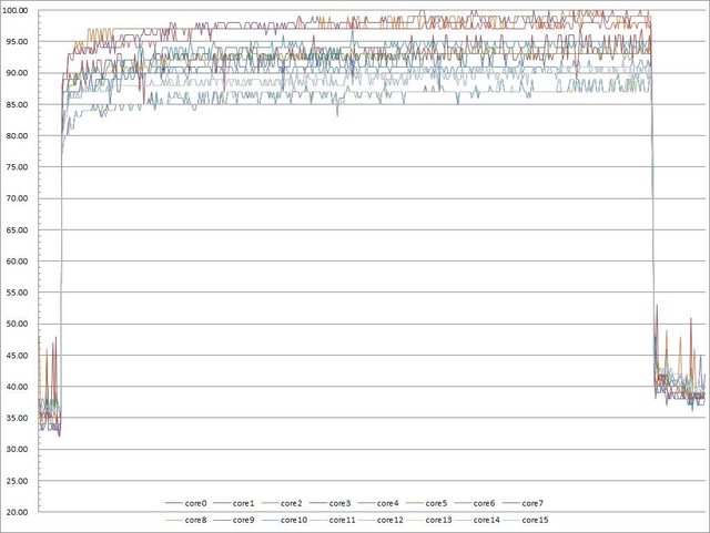 ▼高負載30分鐘CORE TEMP溫度記錄圖